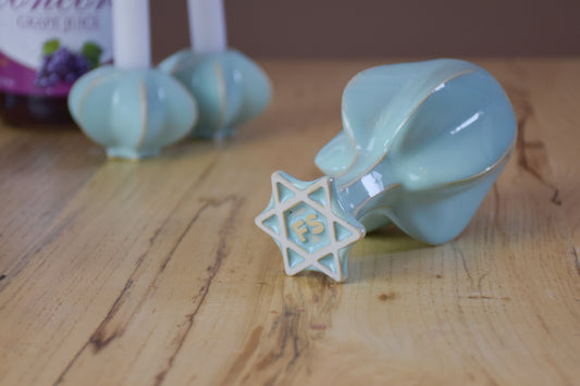 • Handmade ceramic kiddush cup titled 'Pom Kiddush Cup - Baby Blue' – modern Judaica by Feldi Studios
