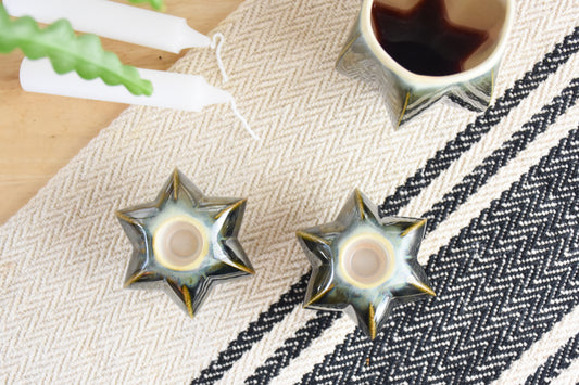 Sold outShabbat Candle Pair - Washed Denim