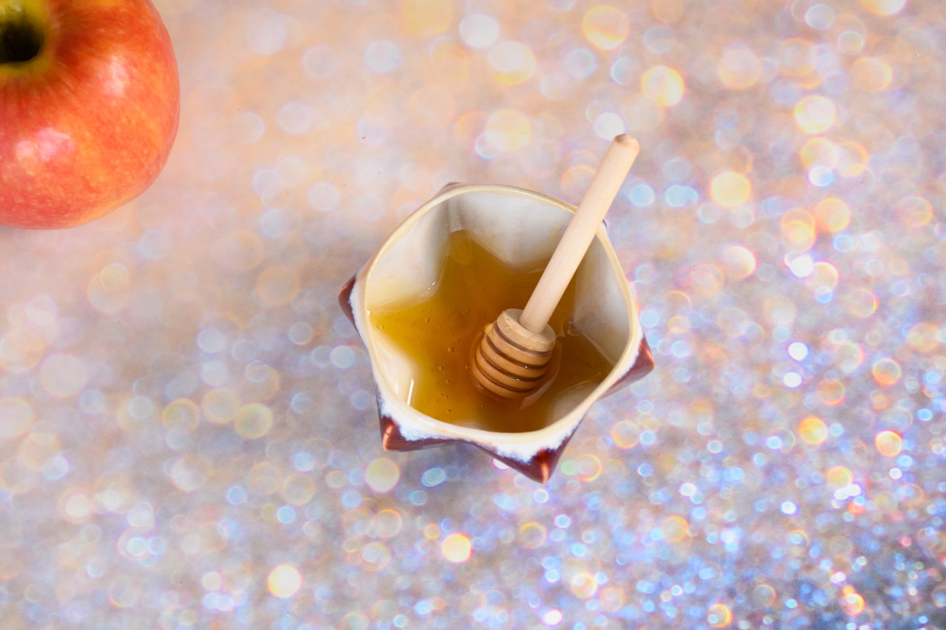 Ideal for serving honey during Rosh Hashanah or displaying year-round as a piece of handmade Jewish ceramic art, this Jewish gift item will resonate with anyone looking to connect with tradition through beautiful, functional design.