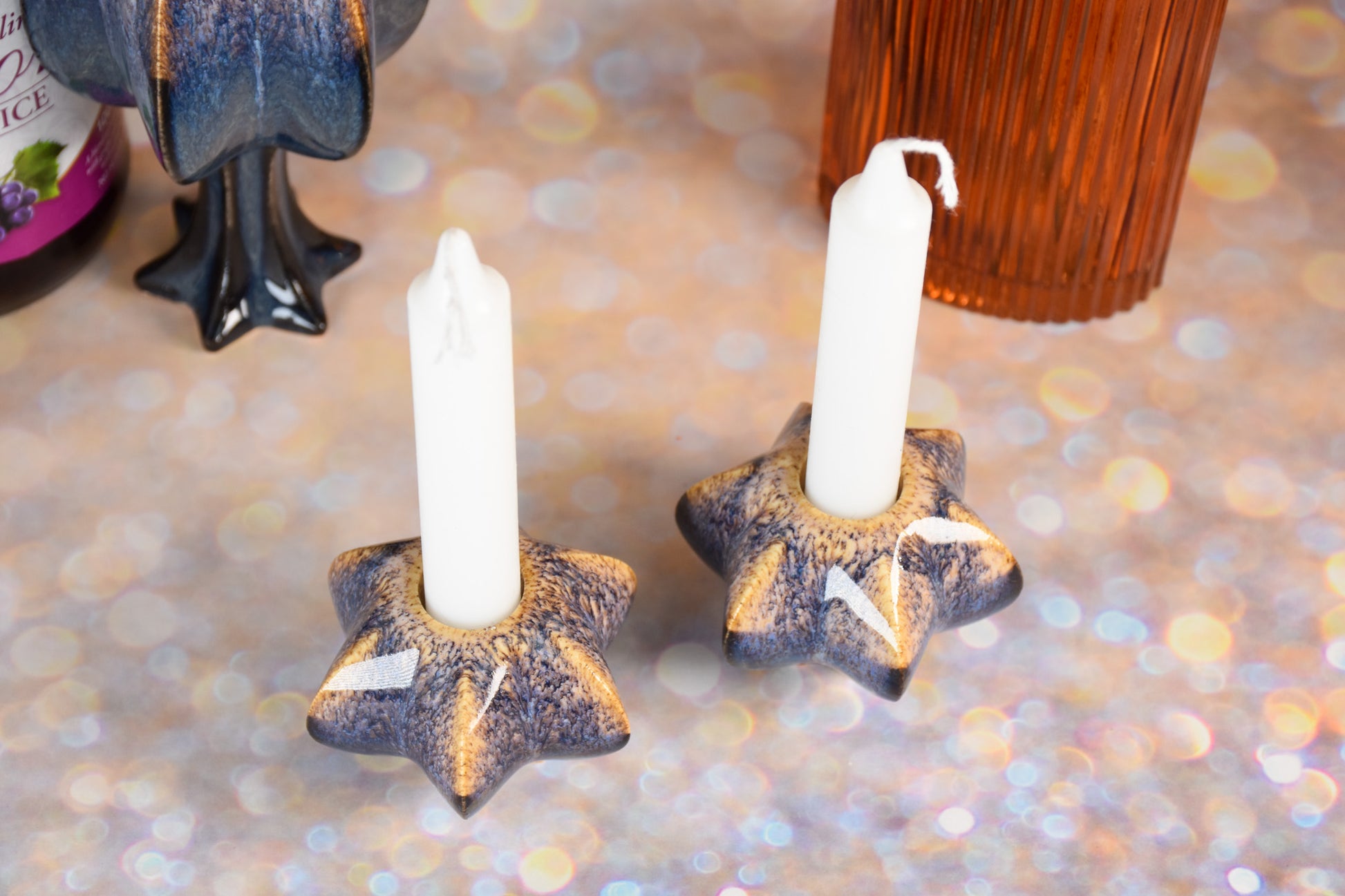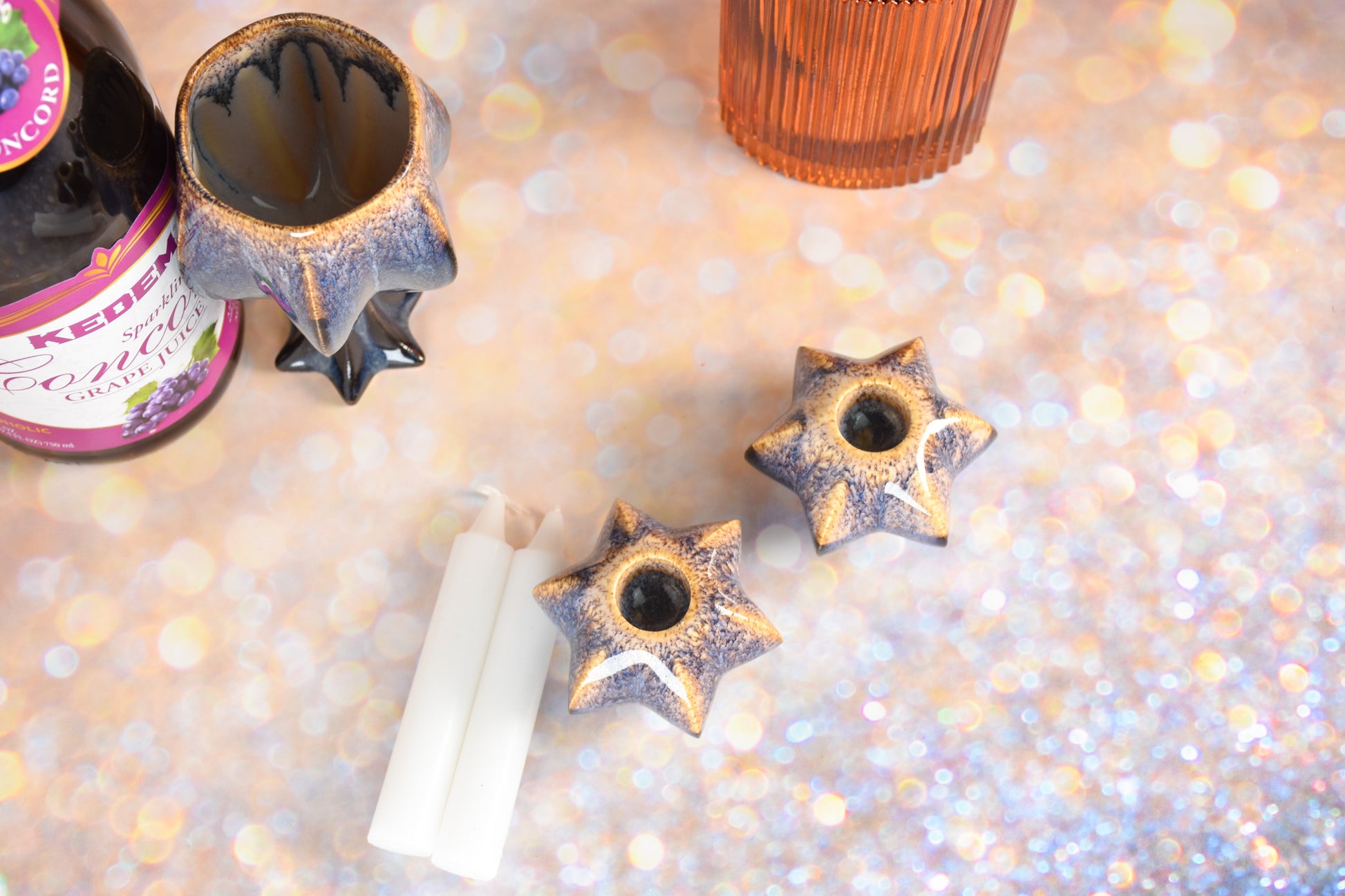 Ceramic Shabbat Candle Holder Pair | Modern Judaica with Hidden Jewish Star