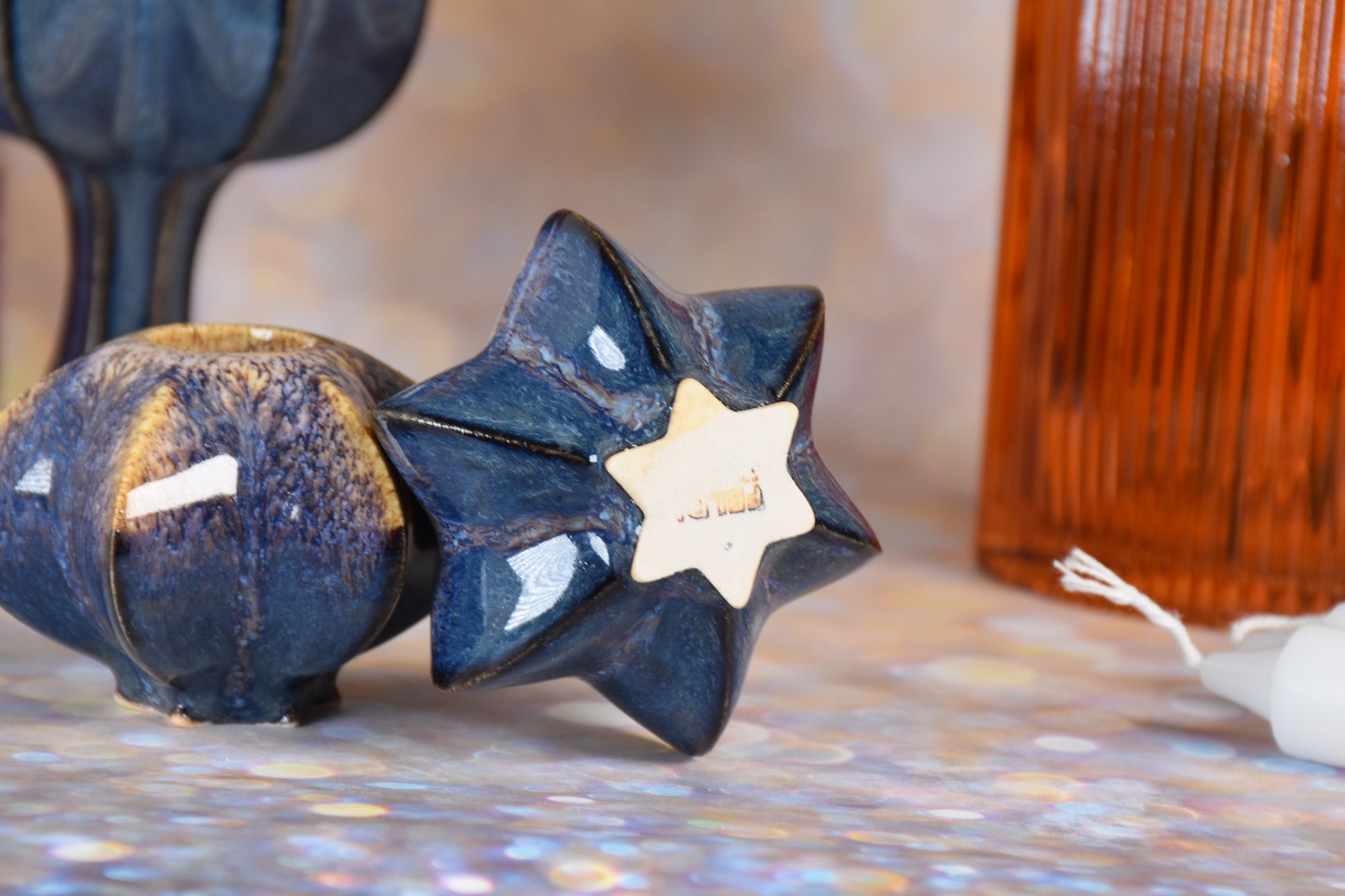 A Jewish Star is subtly revealed in the foot and top view of each holder, bringing depth and meaning to the form. This elegant detail ties together the ritual of lighting candles with Jewish tradition, making each use feel both sacred and beautifully designed.